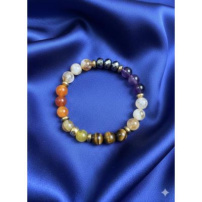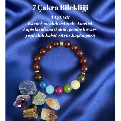 Yedi Çakra Doğal Taş Bilekliği | Karnelysn – Akik – Ametist – Lapis Lazuli – Mavi Akik – Pembe Kuvars – Yeşil Akik – Kalsit Sitrin – Kaplan Gözü | Enerji ve Ruhsal Denge Bilekliği