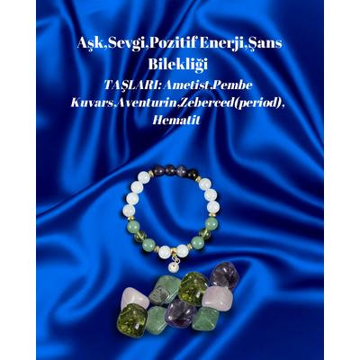 Aşk ve Sevgi Doğal Taş Bilekliği | Ametist – Pembe Kuvars – Aventurin | Pozitif Enerji ve Şans Bilekliği