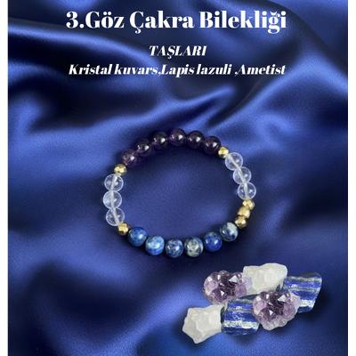 Üçüncü Göz Çakra Doğal Taş Bilekliği | Kristal Kuvars – Ametist – Lapis Lazuli | Zihinsel Netlik ve Sezgi Bilekliği